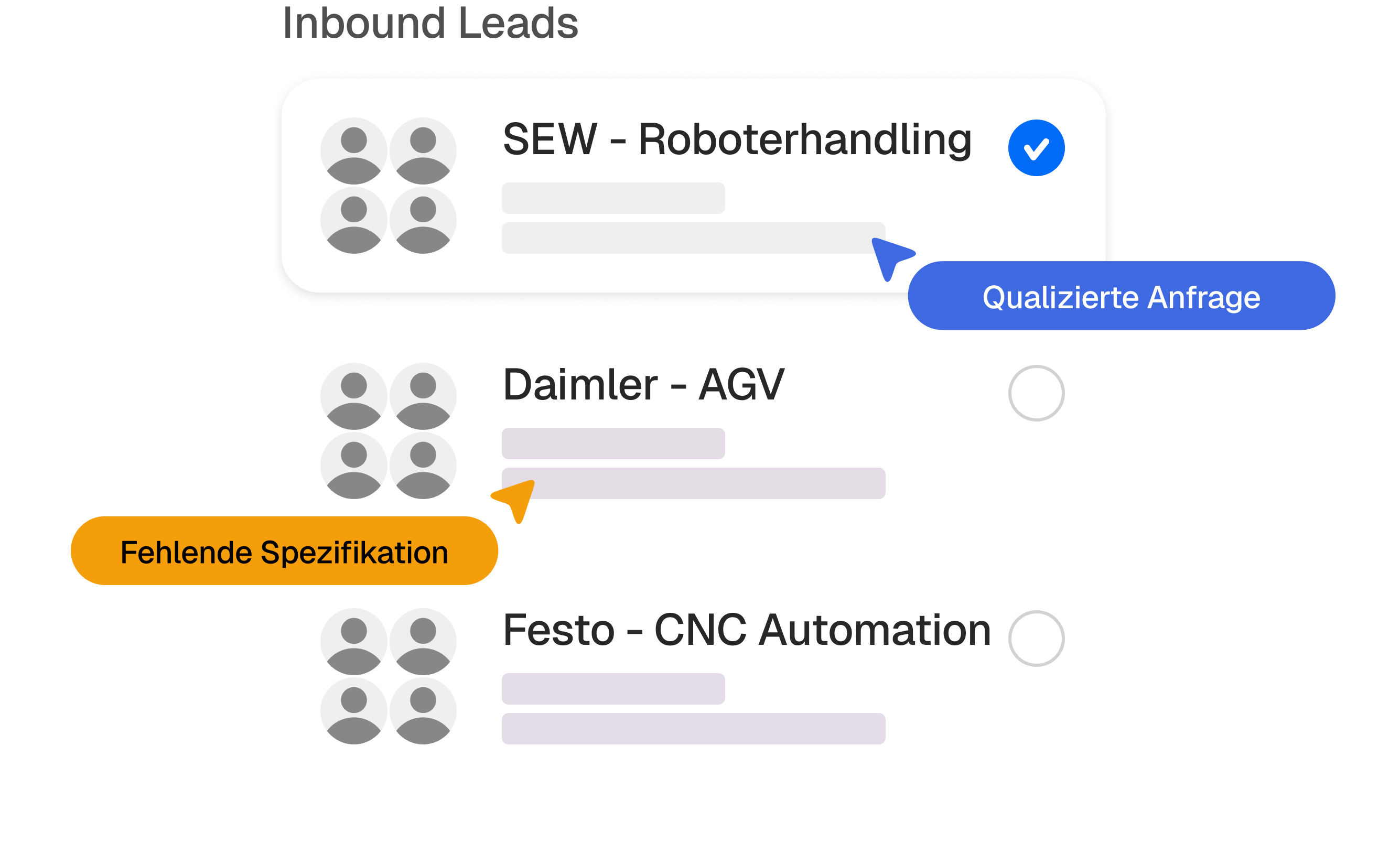 Strukturierte Erstqualifizierung von Inbound-Anfragen, inkl. Abfrage zentraler Anforderungen und Spezifikationen zur Bewertung von Bedarf, Timing und Relevanz.