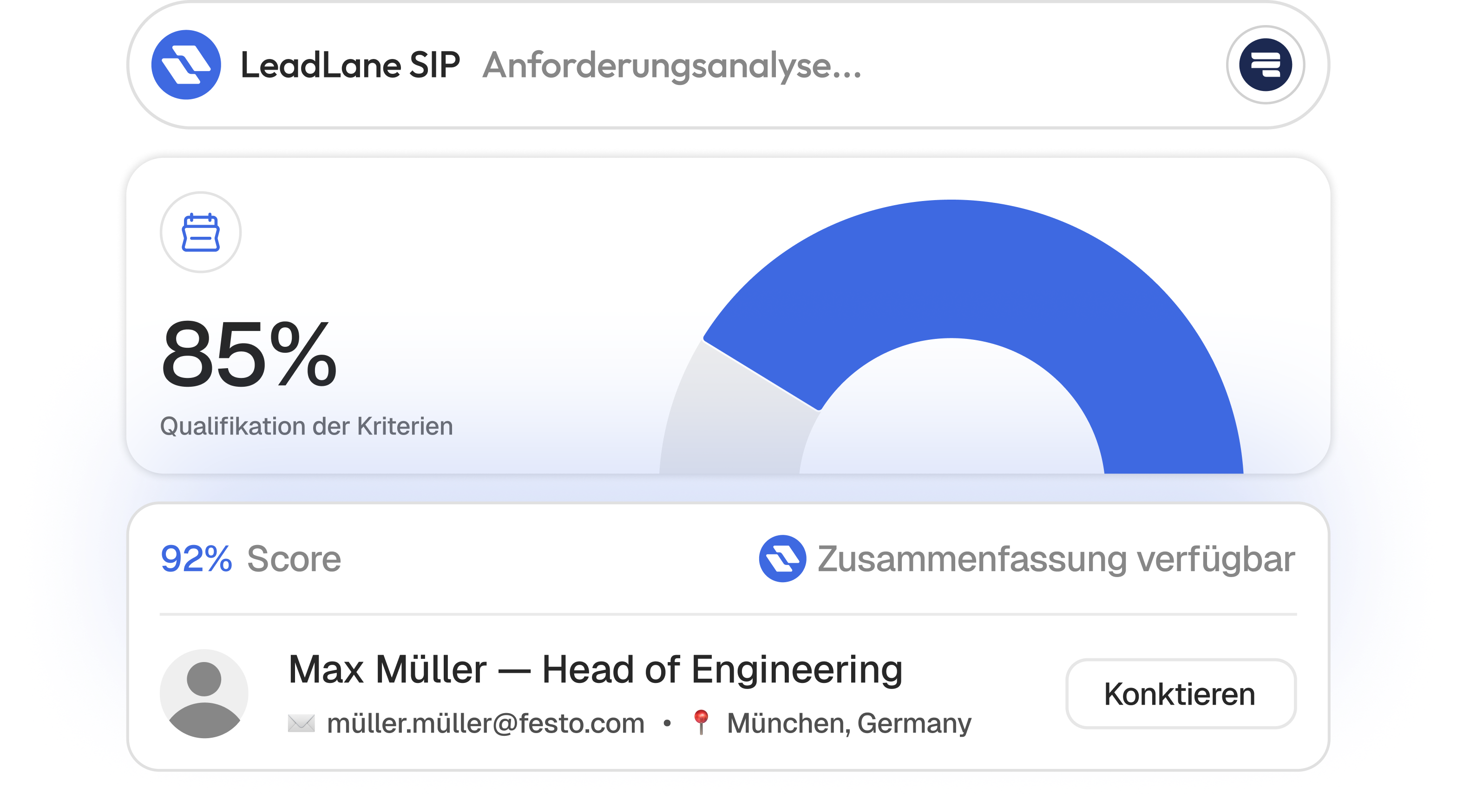 LeadLane verbindet Gespräche, Marktintelligenz und KI, um echte Bedarfssignale im Markt zu identifizieren.